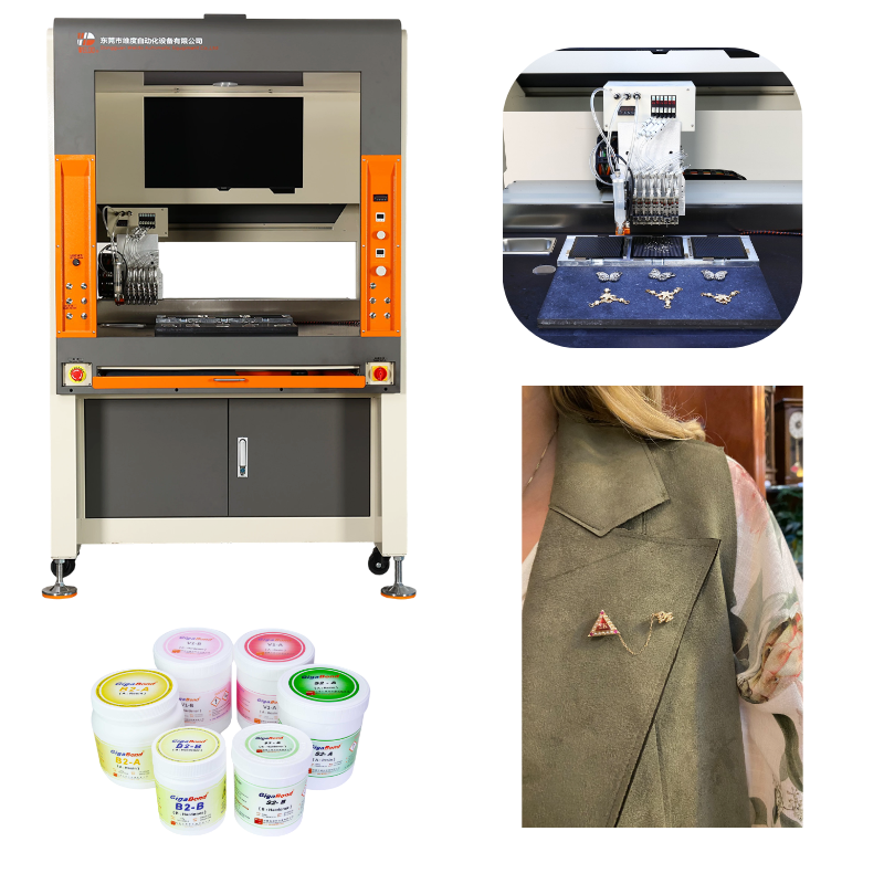 Máy đính đá tự động này (còn được gọi là Máy đính đá kim cương hoặc Máy đính đá trang sức ) là một hệ thống thông minh, dựa trên thị giác được thiết kế cho ứng dụng kết dính và đặt đá có độ chính xác cao. Nó chủ yếu được áp dụng để đổ keo epoxy và đặt các viên kim cương hoặc pha lê có hình dạng và kích cỡ khác nhau lên nhiều loại vật dụng trang trí, bao gồm đồ trang sức thời trang, phụ kiện, đồng hồ, móng tay nhân tạo, huy hiệu và biển số xe.